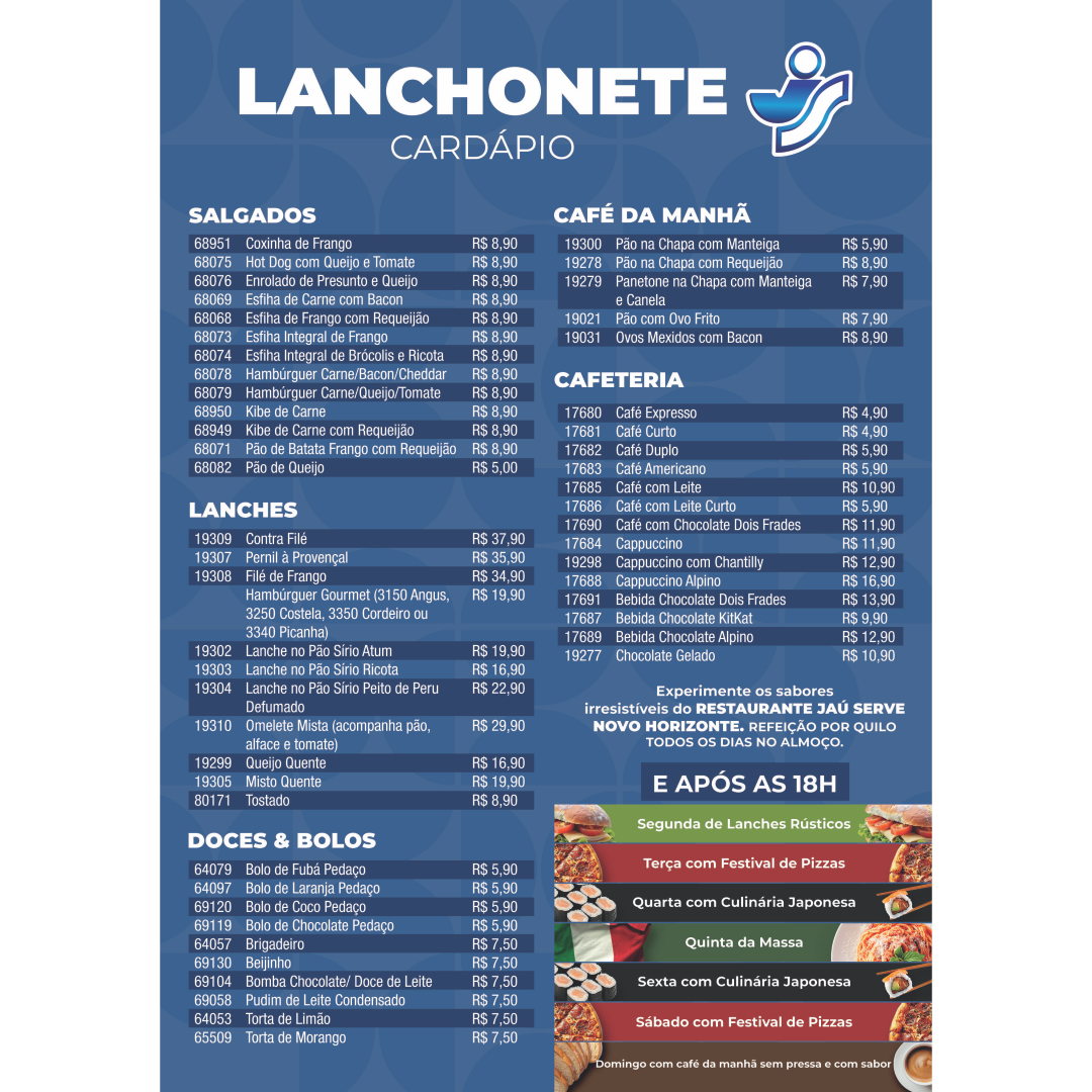 Cardápio Lanchonete